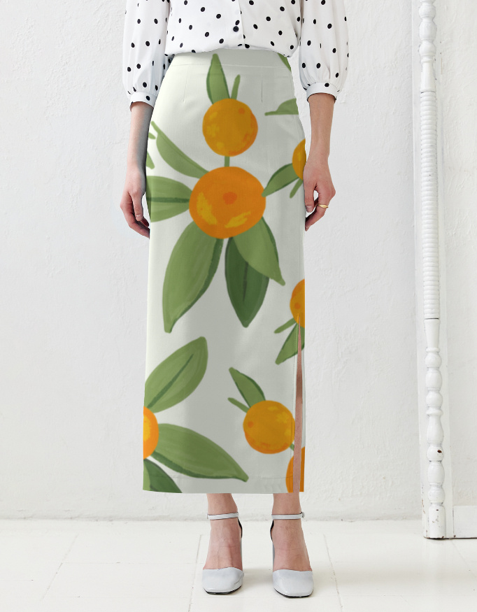 Design: A classic pencil silhouette elevated with a subtle side slit for ease of movement and a modern edge.